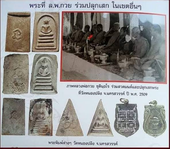 หลวงพ่อกวย ได้ทำการจัดสร้างพระสมเด็จพิมพ์นี้ขึ้นเพื่อนำไปเข้าร่วมงานที่ระลึกในงานผูกพัทธสีมา ของวัดหนองปลิง และได้นำพระบางส่วนใส่ลงในโอ่ง แล้วนำไปบรรจุกรุไว้บริเวณ ใต้ฐานพระประธานในอุโบสถหลังเก่า