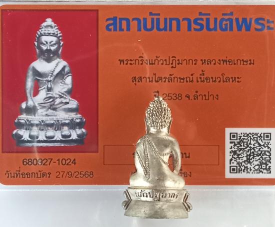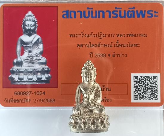 เคาะเดียวแดง++พระกริ่งแก้วปฏิมากร หลวงพ่อเกษม เขมโก เนื้อนวโลหะ ปี 2538 มาพร้อมบัตรการันตีพระแท้