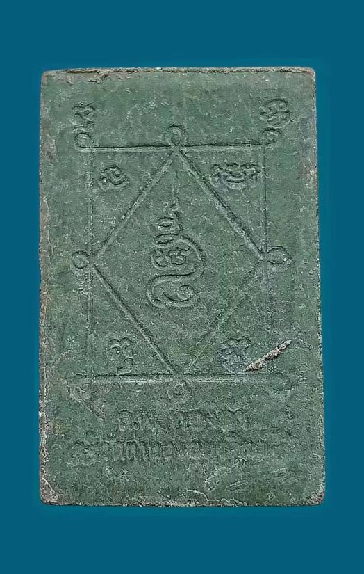 เนื้อเขียวหยกตะกรุตตะกั่ว + เนื้อผงพุทธคุณ ไม่ฝังตะกรุด มีเส้นเกศา หลังยันต์