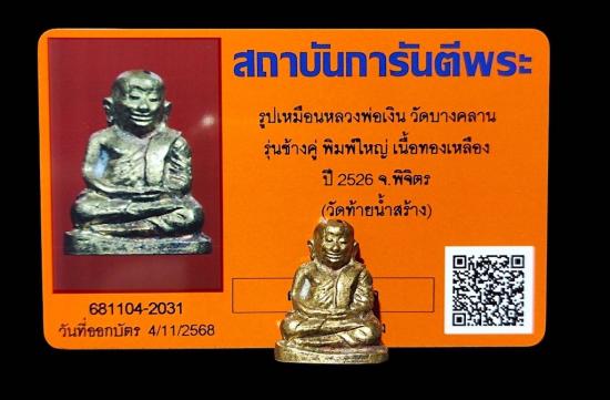 ...รูปเหมือนหลวงพ่อเงิน วัดบางคลาน รุ่นช้างคู่ พิมพ์ให่ เนื้อทองเหลือง ปี2526 สภาพสวยๆ พร้อมกล่องเดิม พร้อมบัตรG-PRA