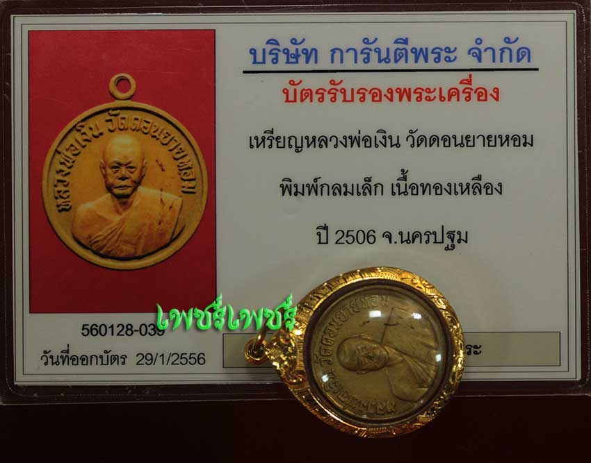 เหรีย หลวงพ่อเงิน วัดดอนยายหอม พิมพ์กลมเล็ก เนื้อทองเหลือง ปี2506 จ.นครปฐม เลี่ยมทองยกซุ้มประมาณ65-70% พร้อมบัตรรับรองพระแท้จากการันตีพระสบายใจได้พระแท้แน่นอน ค่ะ