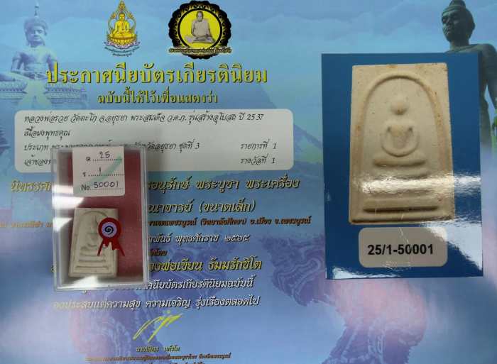 หลวงพ่อรวย วัดตะโก จ.อยุธยา สมเด็จ ว.ต.ก เล็ก รุ่นสร้างอุโบสถ ปี 2537 เนื้อผงพุทธคุณ พร้อมรางวัลงาน ประกวดที่ 1 |