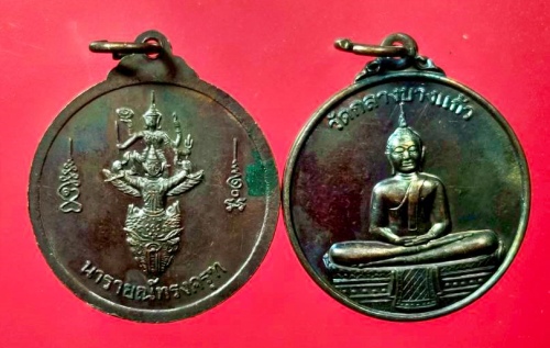 เหรียพระประธาน หลังนารายณ์ทรงครุฑ วัดกลางบางแก้ว (หลวงปู่เจือปลุกเสก) นครปฐม จำนวน 2 เหรีย สวยเดิมๆ เก่าเก็บ