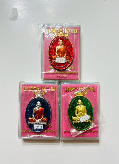 วัดใจ เหรียญมหาปราบ1 หลวงปู่บุญ ธมมธีโร วัดบ้านหมากมี่ จ.อุบลราชธานี ชุดกรรมการลงยา 3 เหรียญ |