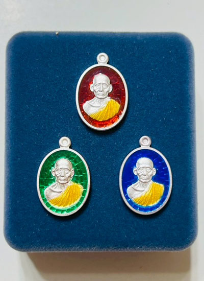 วัดใจ เหรียญรุ่นสารพัดดี หลวงพ่อโปร่ง โชติโก วัดถ้ำพรุตะเคียน จ.ชุมพร เนื้อเงินลงยา 3 สี เลข161 |