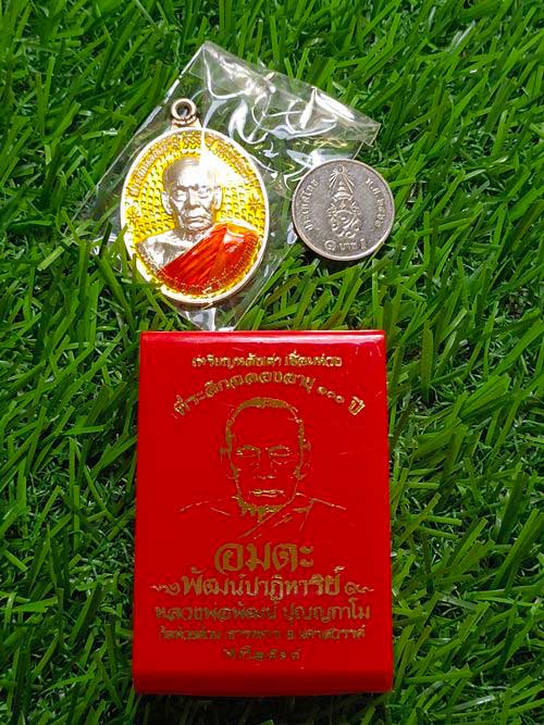 " วัดใจ เคาะเดียวแดง " เหรียญห่วงเชื่อม 2 อมตะพัฒน์ปาฏิหาริย์ หลวงพ่อพัฒน์ ปุญญกาโม วัดห้วยด้วน จ.นครสวรรค์ ปี 2564 เนื้อเงิน ลงยาสีเหลือง หมายเลข 64 (น้ำหนักประมาณ 20.xx กรัม) |