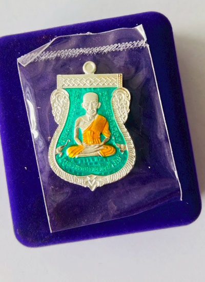 วัดใจ เหรียญเสมาฉลุยกองค์ รุ่นไอ้ไข่ กายสิทธิ์ วัดเสมาเมือง จ.นครศรีธรรมราช เนื้อเงินลงยาสีเขียว เลข50