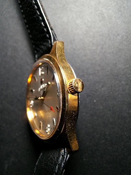 ตัวเรือนทองชุบเดิมๆไม่มีลอก เข็มลูกศรแดง หลักทองขีดดำ สวยมีพรายน้ำเดิมๆทุกจุด หน้าปัดสวยคมกริบสะอาดตา เครื่องเดินดี ไขลานนิ่มมือมาก สภาพสวยนางฟ้าถ้านับอายุกว่า60ปี เม็ดมะยมเดิมๆ ขนาดบอยไซค์ 34มม. หาสภาพนี้ยากแล้วครับ