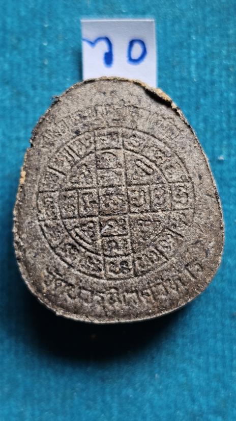 พระปิดตาหลังนะยันต์ดวงพิมพ์เล็ก เนื้อ2สี เกสรและใบลาน ตะกรุดเงิน ครับ(๖๐)