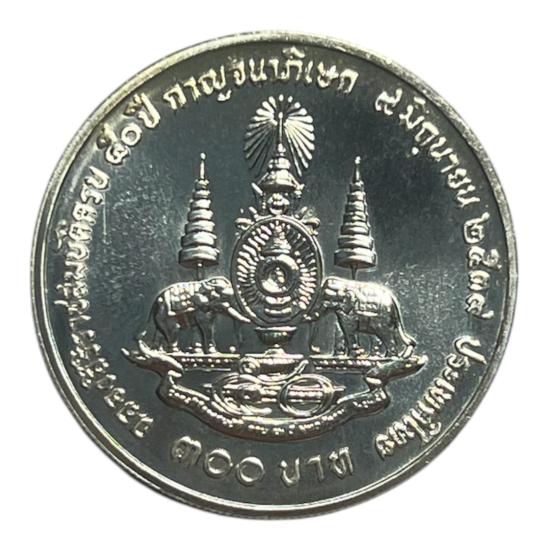 เหรียญเงิน 300 บาท ที่ระลึกพระราชพิธีกาญจนาภิเษก พระบาทสมเด็จพระปรมินทรมหาภูมิพลอดุลยเดช รัชกาลที่ 9 พ.ศ.2539 น้ำหนักประมาณ 15.6 กรัม |