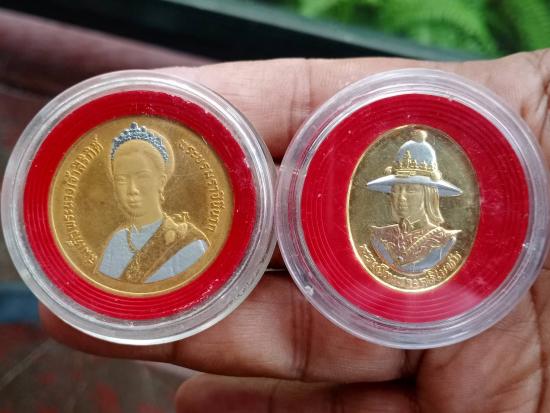 เหรียญพระพันปีหลวง+พระสุริโยทัย เนื้อสามกษัตริย์ +กล่องเดิม สภาพสวยหายาก น่าสะสม |