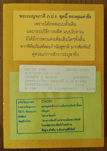 ****ใบอนุโมทนาบัตรกำกับเลขประจำองค์ด้วยลายมือเขียน เลขตรงกับองค์พระทุกชุด
