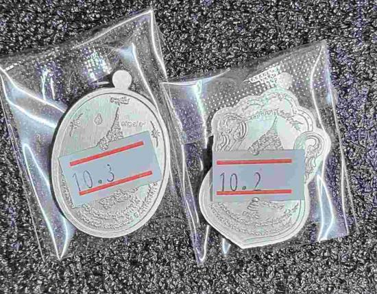 เคาะเดียวแดง เหรียญหลวงพ่อพัฒน์ รุ่นพยัคฆ์แสนล้าน เนื้อกะไหล่เงินลงยา แดง รวม 2 เหรียญ