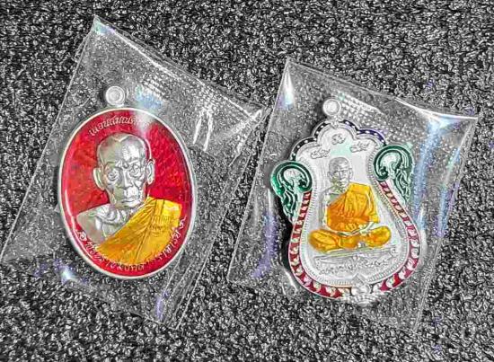 ส่งคืนพื้นที่ เหรียญหลวงพ่อพัฒน์ รุ่นเลื่อนสมณศักดิ์ เนื้อกะไหล่เงินลงยาแดง รวม 2 เหรียญ สภาพเดิม ซิลเดิม