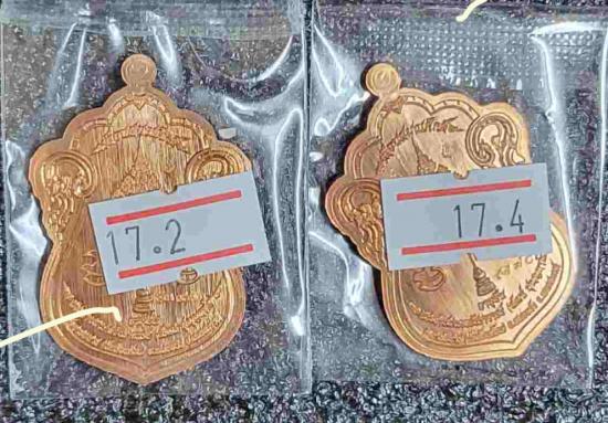 เคาะเดียวแดง เหรียหลวงพ่อพัฒน์ รุ่นเลื่อนสมณศักดิ์ เนื้อทองแดงลงยา รวม 2 เหรีย