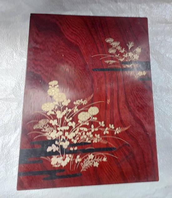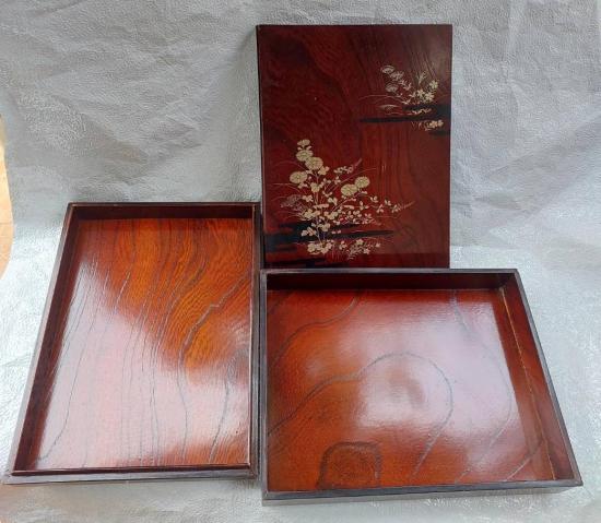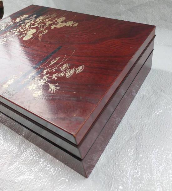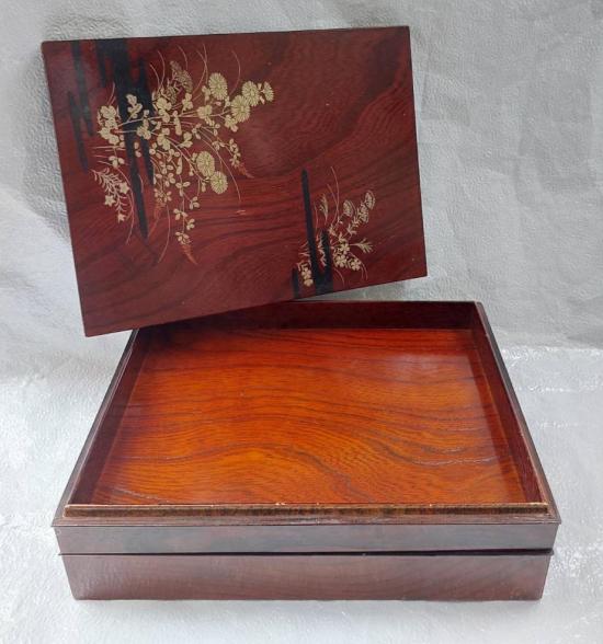 กล่องไม้เคลือบเงาสไตล์ี่ปุ่น 2 ชั้น เพ้นสีทองลายดอกไม้ ขนาดให่ 33 x 25 ซม. สูง 10 ซม. งานหัตถกรรมี่ปุ่นแบบดั้งเดิม งานไม้สวยๆ