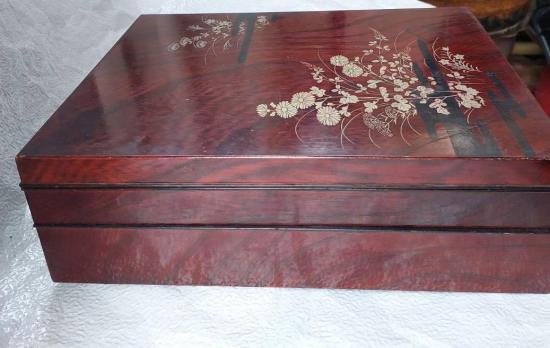 กล่องไม้เคลือบเงาสไตล์ี่ปุ่น 2 ชั้น เพ้นสีทองลายดอกไม้ ขนาดให่ 33 x 25 ซม. สูง 10 ซม. เก็บของสะสม อุปกรณ์พระเครื่อง