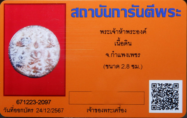 รายละเอียด พระงบน้ำอ้อย พิมพ์พระเจ้าห้าพระองค์ เนื้อดินเผา สีแดง(นิยม) หลังเบี้ย ทุ่งเศรษฐี ยอดนิยม จ.กำแพงเพชร + บัตรรับรอง G-PRA