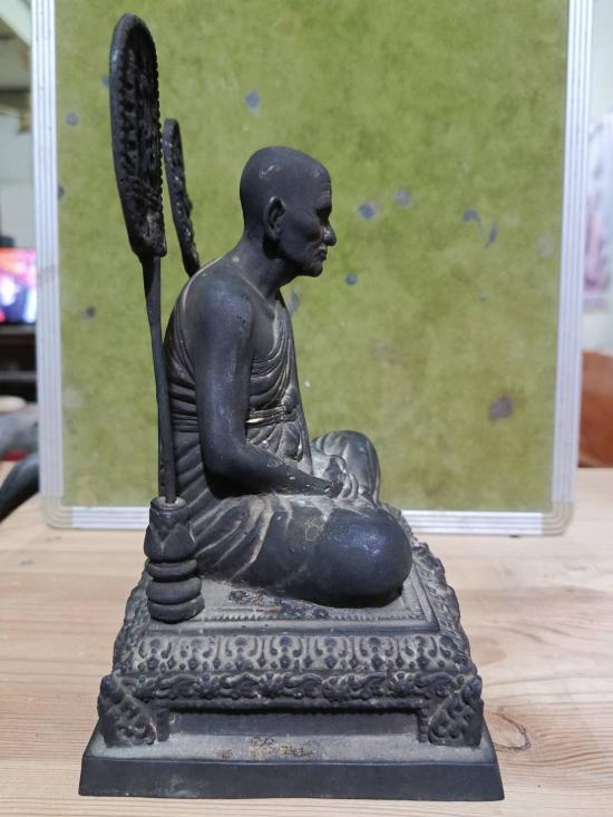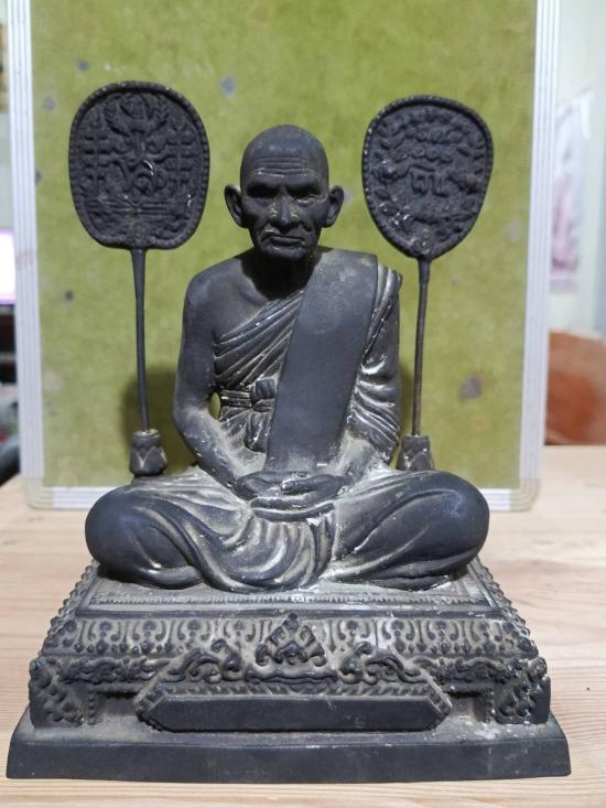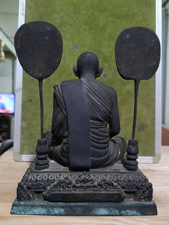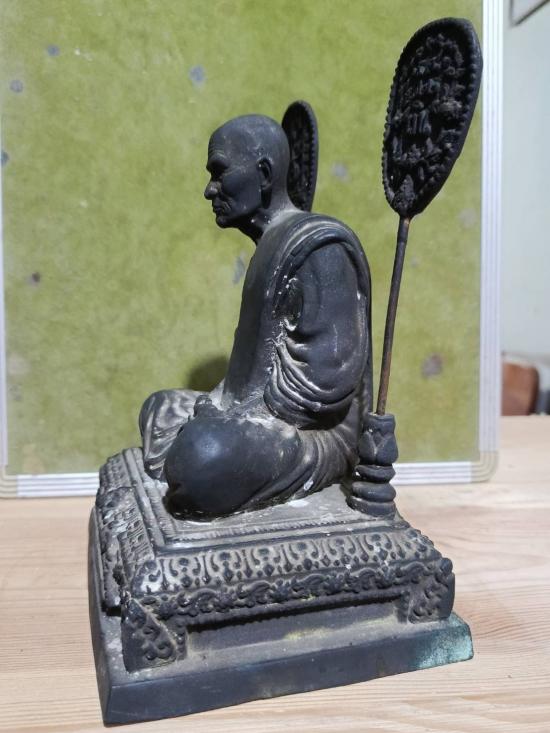 พระบูชาพัดยศ หลวงพ่อเงิน วัดบางคลาน จ.พิจิตร ฐานธรรมมาศ ฐาน 6*5 นิ้ว สูง 8 นิ้ว เนื้อโลหะเก่าผิวหิ้ง พัดถอดได้ด้านหน้าเขียนพระถิรนาม