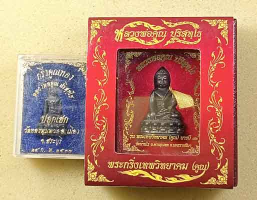 พระกริ่ง คูณทอง หลวงพ่อคูณ ปลุกเสก ออกวัดทองพุ่มพวง จ.สระบุรี ปี 2537 กล่องเดิม + พระกริ่งหลวงพ่อคูณ รุ่นพระเทพวิทยาคม บารมี 91 วัดบ้านไร่ กล่องเดิม
