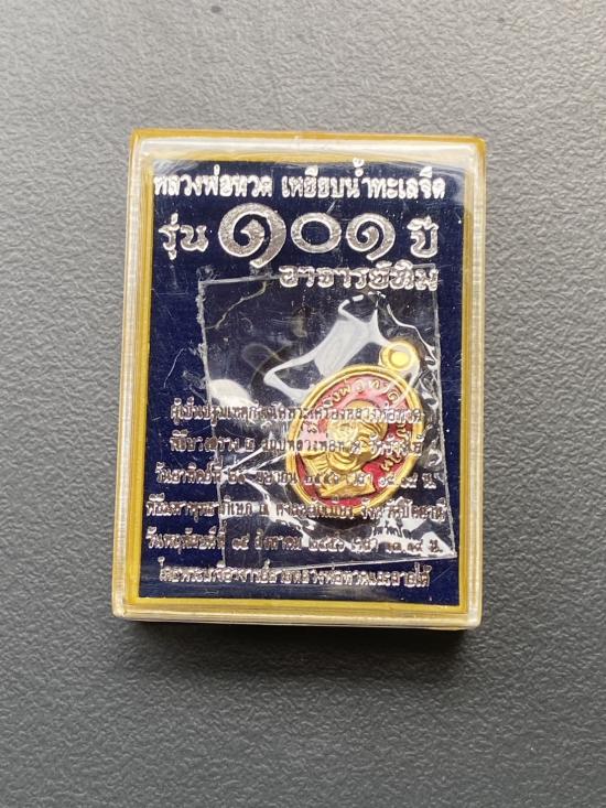 เม็ดแตงหลวงปู่ทวดหลังอาจารย์ทิม รุ่น101ปี เนื้อทองแดงนอกชุบทองลงยาแดง |