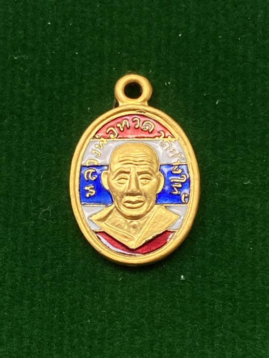 เม็ดแตงหลวงปู่ทวด หลังอาจารย์ทิม รุ่น100ปี เนื้อชุบทองลงยาธงชาติ |