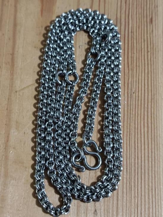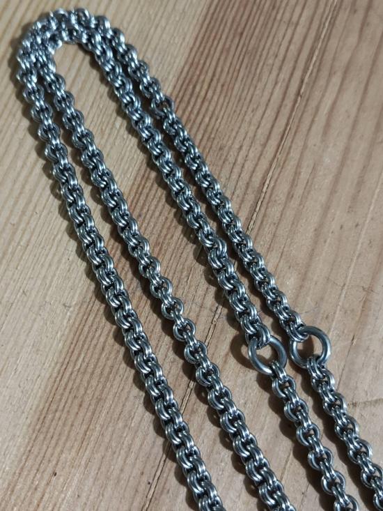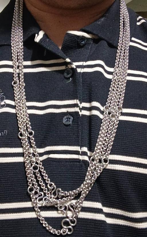 สร้อยคอเซียนพระห่วงคู่ สร้อยแสตนเลสพุกแท้ ห่วงตัด ตอกความละเอียด 100% แขวนพระได้ 5 องค์ รุ่นเก่าไม่ลอกไม่ดำ.ยาว 32 นิ้วสวมหัวได้ สวยสมบูรณ์เบอร์18