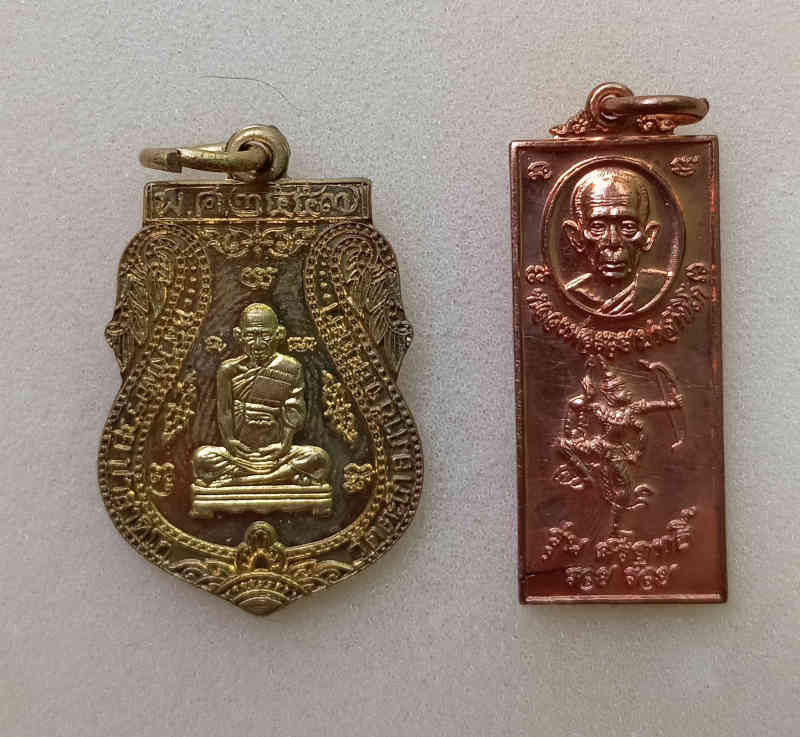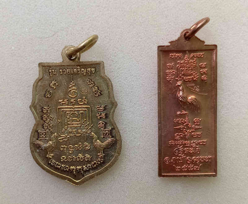 เหรียญหลวงพ่อรวยวัดตะโกรุ่นรวยเจริญสุข+รุ่นศรฤทธิ์+ไก่โชคดี2ตนเคาะเดียวแดงครับ