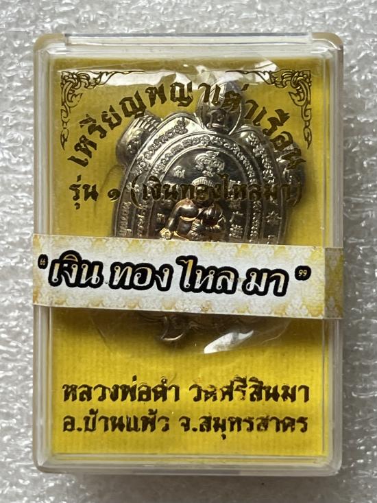 เหรียญพญ่าเต่าเรือน รุ่น1 เงินทองไหลมา หลวงพ่อดำ วัดศรีสินมา สมุทรสาคร สวยเดิมนอนกล่องมีจารย์เพิ่มความขลัง