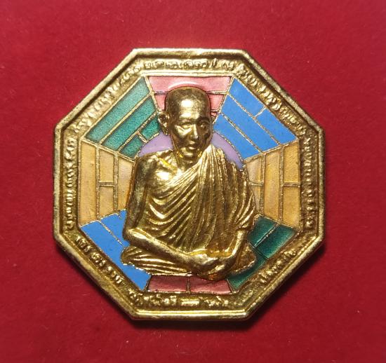 เหรียญ หลวงพ่อเกษม เขมโก ปี 2538 จ.ลำปาง เหรียญรูปเหมือนทรงแปดเหลี่ยมลงยา(โป้ยกั๊ก) รุ่นคุ้มภัยแปดทิศ สร้างปี พ.ศ. 2538 บูชาไว้ที่บ้าน หรือติดตัวป้องกันภัยทั้ง 8 ทิศ ไม่มีกล่อง