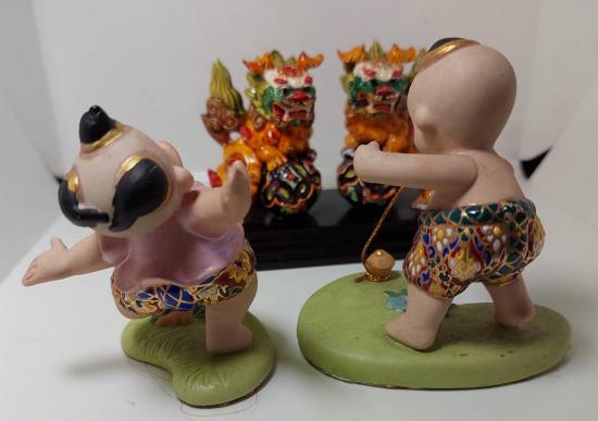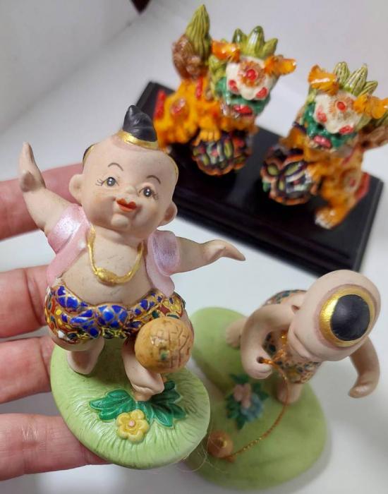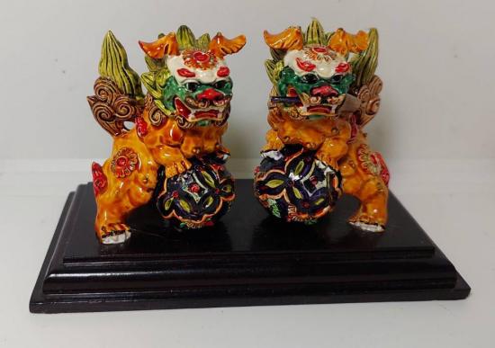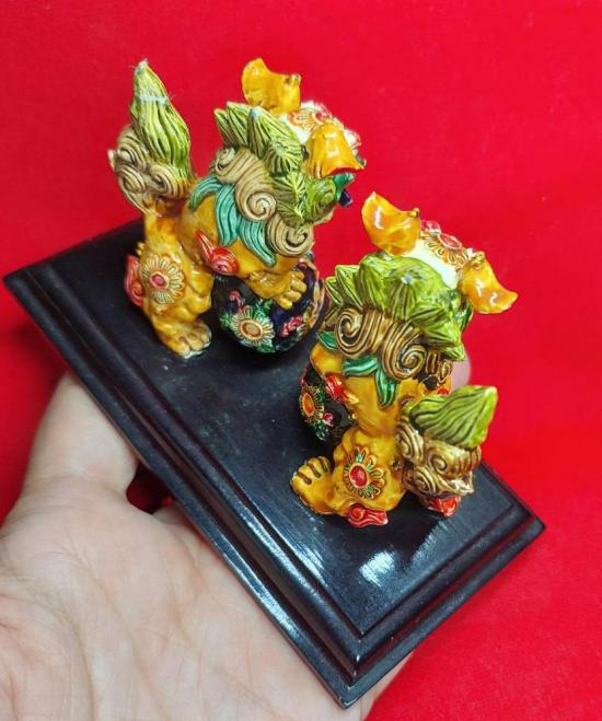 **วัดใจ***สิงโตี่ปุ่น "สิงโตผู้พิทักษ์"ขนาดเล็ก (ขนาดสูง7*กว้าง 12cm.)รวมแท่นวาง พร้อม ตุ๊กตาเบจรงค์