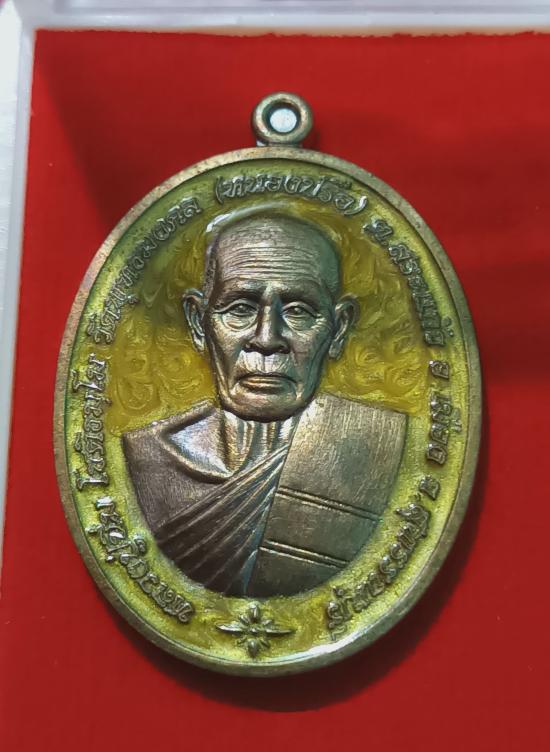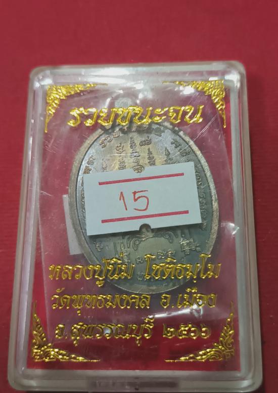 เหรียรวยชนะจน หลวงปู่นิ่ม สุพรรณบุรี เนื้อนวะลงยาเหลืองมุข แท้ทันหลวงปู่ No.15