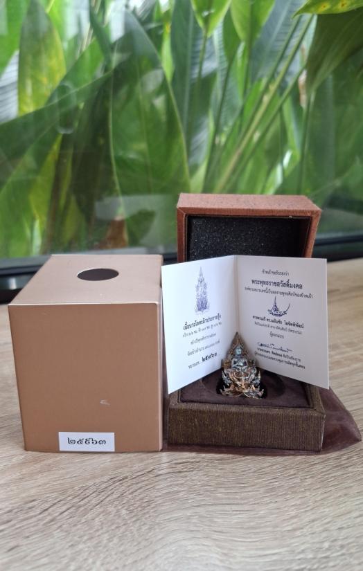 รายละเอียด กราบขออนุญาตท่านอ.เฉลิมชัย โฆษิตพิพัฒน์ นำเสนอ พระพุทธราชสวัสดิ์มงคล เนื้อนวะโลหะ ผิวรุ้ง หมายเลข ๒๕๙๖๓ อุปกรณ์ครบ ขนาดกว้าง ๒.๒ ซม. ลึก ๑.๙ ซม. สูง ๔.๒ ซม