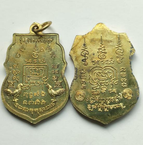 เหรียญรุ่นรวยมหาเศรษฐีหลวงพ่อรวยวัดตะโกปี58 + เหรียญรุ่นรวยเจริญสุขปี57 เนื้อทองเหลือง พร้อมกล่องเดิมครับ