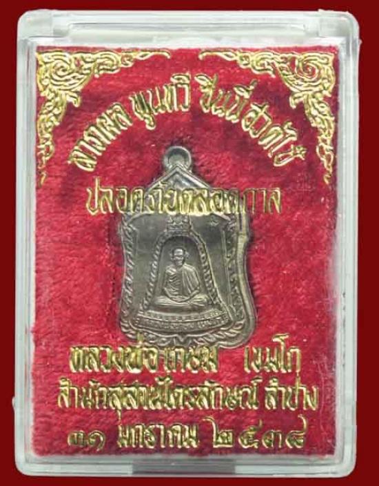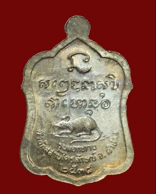 เหรียญแจกทาน เนื้ออัลปาก้า ตอกโค๊ต ปี 2538 กล่องเดิม ลพ.เกษม เขมโก