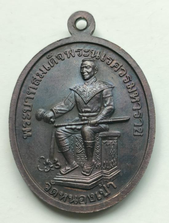 เหรียญหลวงพ่อรวย วัดตะโก อยุธยา หลังสมเด็จพระนเรศวรมหาราช ออกวัดหนองเป้า เนื้อทองแดง