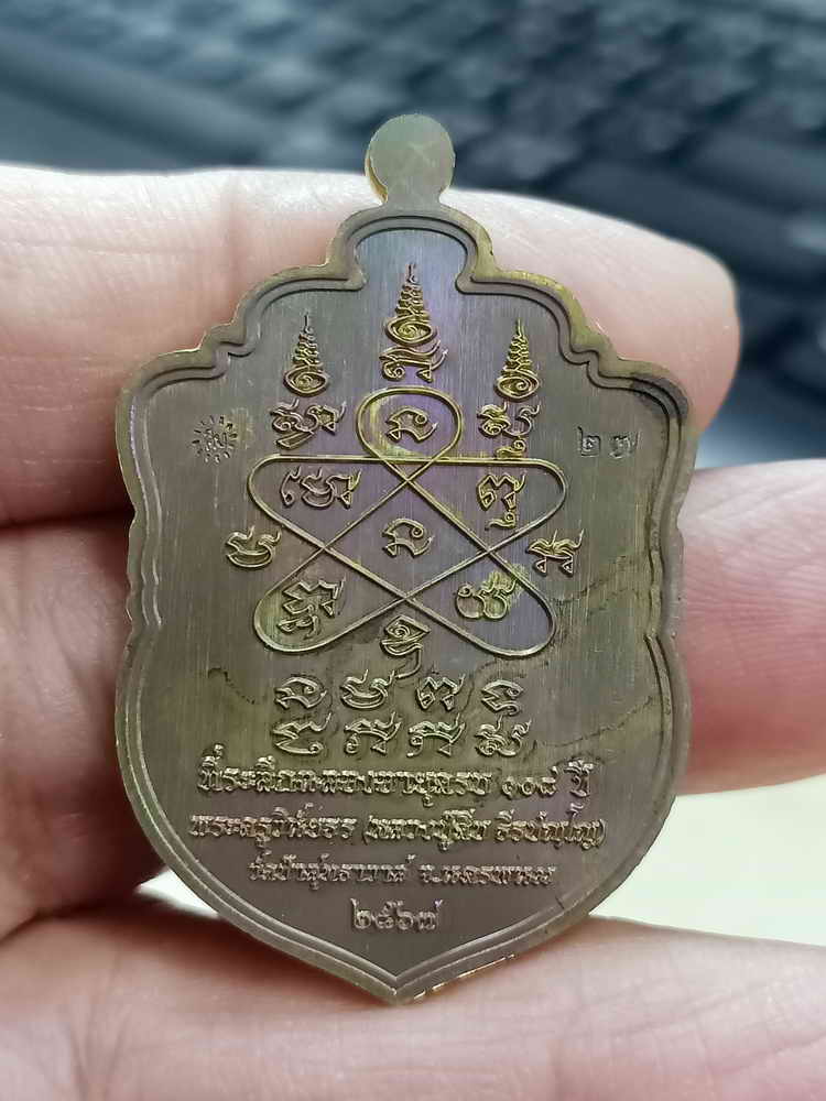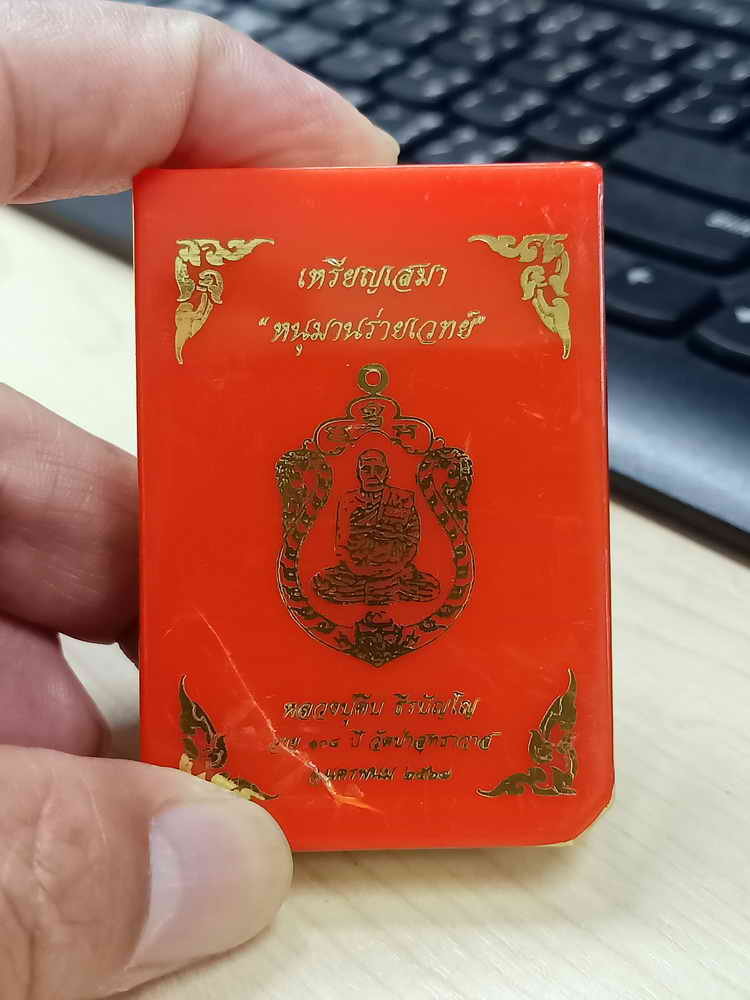 วัดใจ 100 เหรียญเสมาหนุมานร่ายเวทย์ หลวงปู่คีบ ธีรปัญโย วัดป่าสุทธาวาส จ.นครพนม 2567 ชนวนผิวรุ้ง ฝังตะกรุดทองทิพย์ ตอก 9 รอบ หมายเลข 27 สร้าง 30 กล่องเดิม