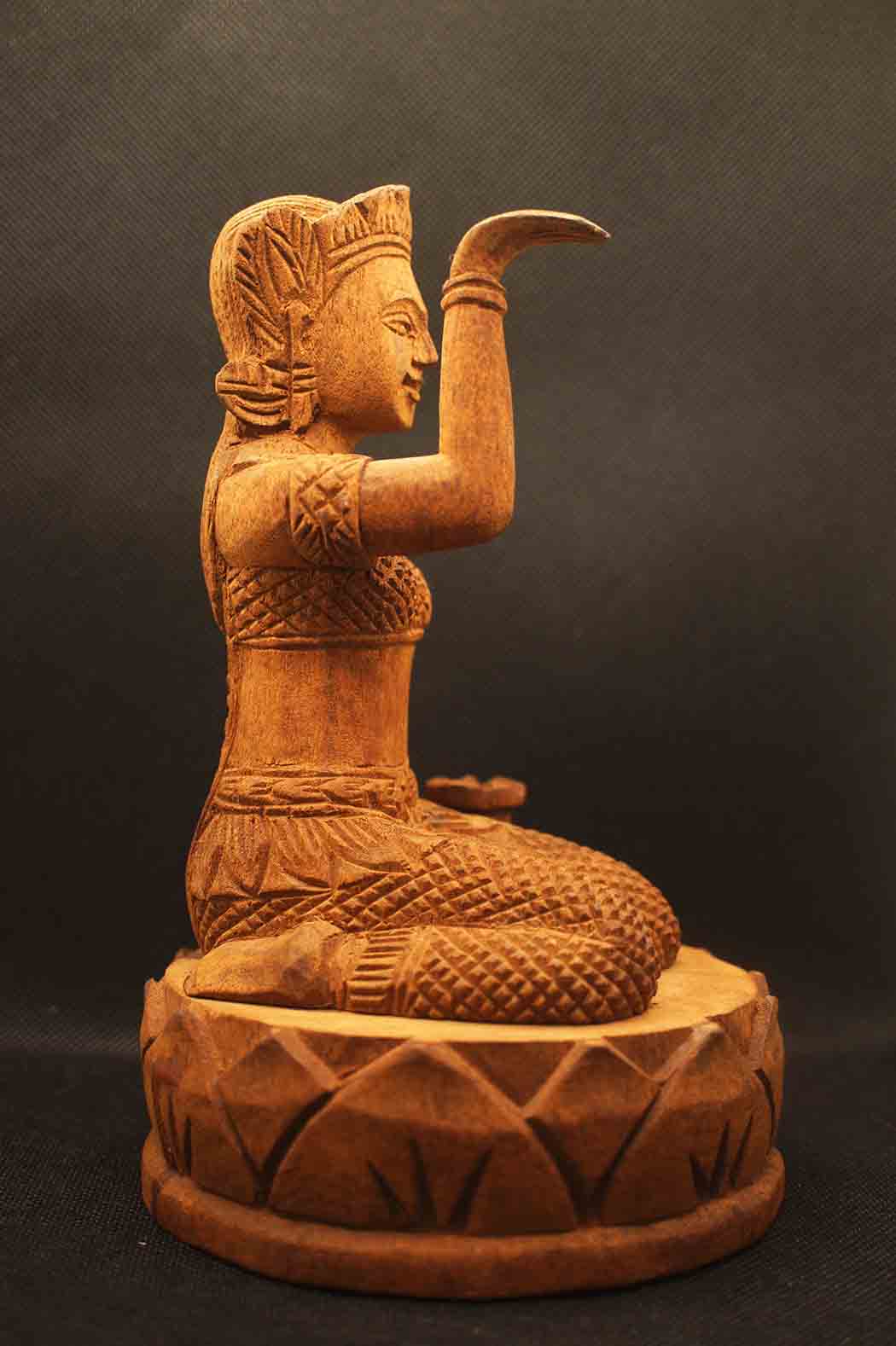 นางกวักแกะ บูชา ขนาด 5 นิ้ว ไม้เทพทาโร หน้าตัก 5 นิ้ว สูง 8 นิ้ว ตอกโค๊ตปีสร้าง 57 + ส + หมายเลข 98 *** จารมือ ใต้ฐาน สร้างน้อยแค่ 105 องค์ *** หลวงพ่อสิน วัดละหารใหญ่ ปี 2557 ( ภาพพระอาจจะเหลืองกว่ |