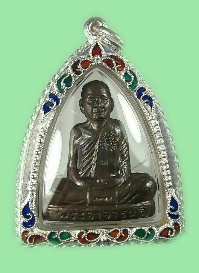 รูปเหมือนปั๊มรุ่นแรก พระอาจารย์จิ วัดหนองหว้า จ.เพชรบุรี เนื้อชนวน สภาพสวยเดิมพร้อมเลี่ยมกรอบเงินลงยาสุโขทัย พ.ศ.2553