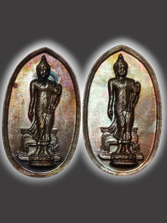 A3533.ชุด 2 เหรียญ สวยๆ พระลีลาปาง 25 พุทธศตวรรษ หลัง ภปร.สมโภชพระศรีสากยะทศพลญาณประทานพุทธมณทลสุทรรศน์ พ.ศ. 2525 ร.ศ.200 พิธีเสกพระยิ่งใหญ่ ชุดที่ 3