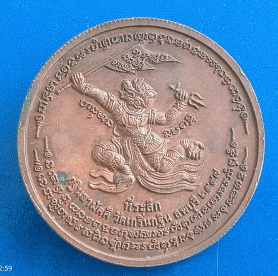 เหรียญขอบสตางค์หลังหนุมานเชิญธง กฐินสามัคคี ๒๕๔๗ หลวงพ่อเพี้ยน วัดเกริ่นกฐิน จ.ลพบุรี (บล็อก ธงชิด) |