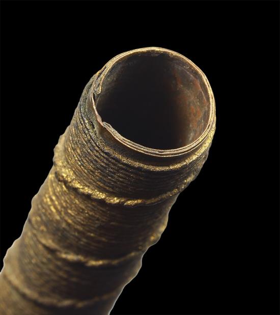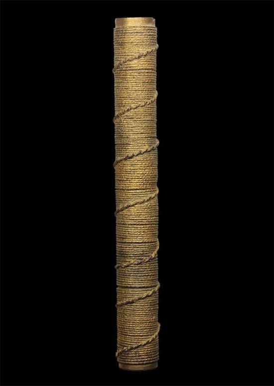 ตะกรุดโทนหลวงพ่อมุ่ย วัดดอนไร่ จ.สุพรรณบุรี ยุคต้น แกนทองแดงความยาว 4 นิ้ว ถักเชือกป่าน