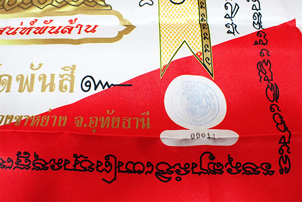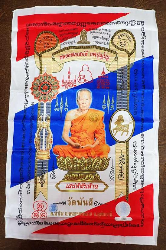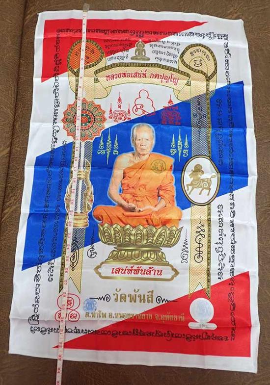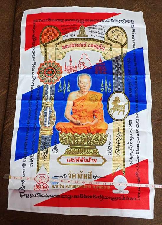 $เคาะแรกเบาวัดใจค่ะ ผ้ายันต์ พิมพ์เลื่อน หลวงพ่อเสน่ห์ กตปุญโญ รุ่น เสน่ห์พันล้าน วัดพันสี จ.อุทัยธานี ผืนใหญ่ ขนาด 21 x 33 นิ้ว สีธงชาติ เลข 00011 ค่ะ$