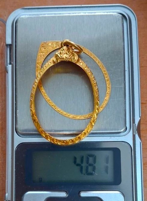 กรอบทองมือสอง งานสั่งทำสวยๆ สามารถใส่เหรียญยอดนิยมทั่วไปที่ไกล้เคียง หน้าจอกว้าง 2.55 ซม., สูง 3.35 ซม. น้ำหนัก 4.81 กรัม G75.55% เคาะเดียว