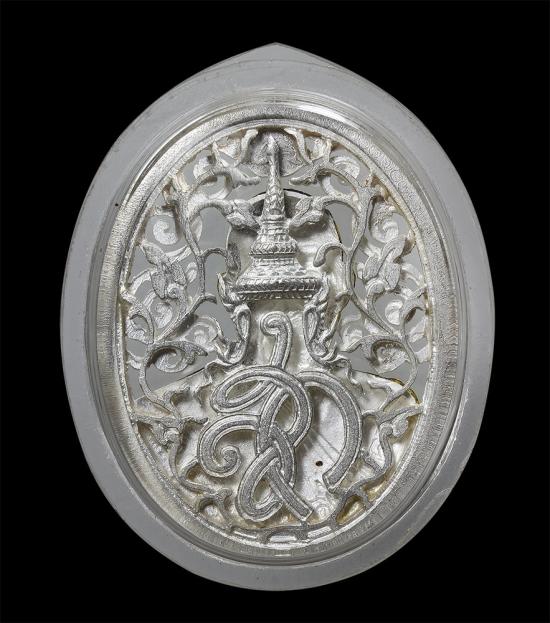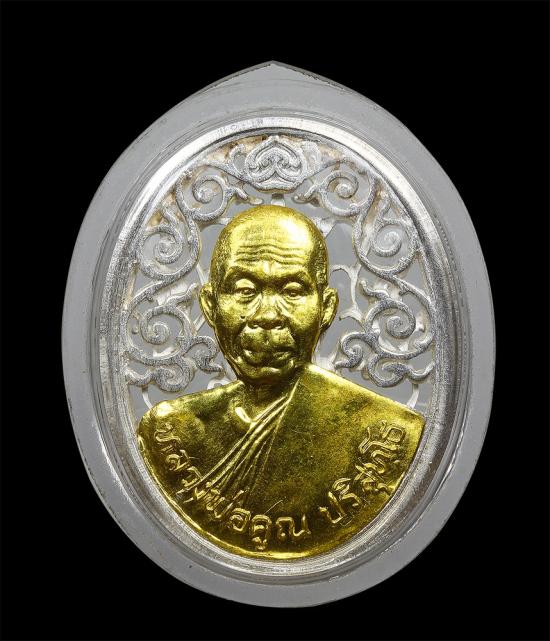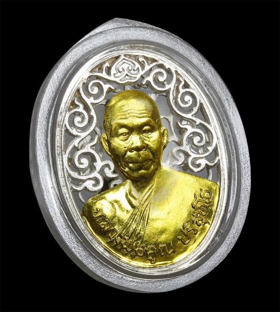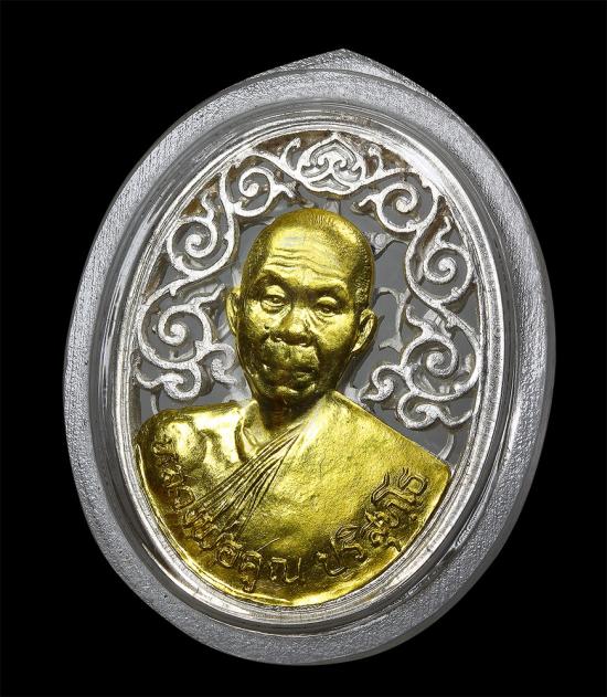 เหรียญลายฉลุ หลัง สก. หลวงพ่อคูณ วัดบ้านไร่ เนื้อเงิน หน้ากากทองคำแท้ ปี2536