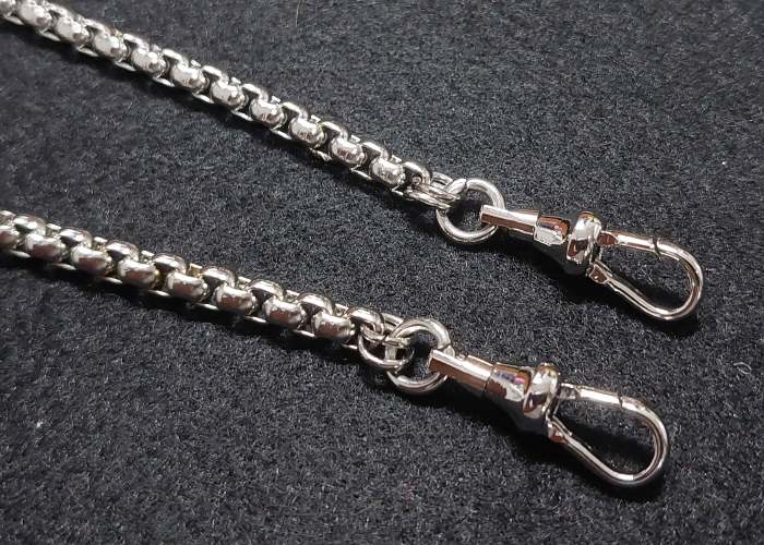 สร้อยสแตนเลสผ่าหวาย หนา 4.2 มิล ยาว 26 นื้ว พร้อมสปริงก้ามปูสแตนเลส1คู่ .. |