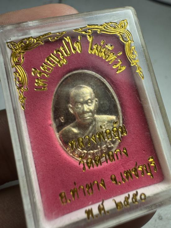 วัดใจ120 เหรียญกลมไร้ห่วงเนื้อเงิน หลวงพ่ออุ้น ผิวรุ้ง