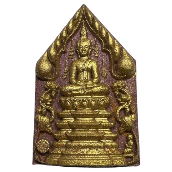 พระผงพุทธ รุ่น เจริญทรัพย์ เนื้อว่านทองอุมาวดีปิดแผ่นทองคำเปลว ฝังพลอยโกเมนคลุกจีวรหลวงปู่มหาศิลา สิริจันโท ปลุกเสก สร้าง 1200 องค์ หมายเลข 634 กล่องเดิม |