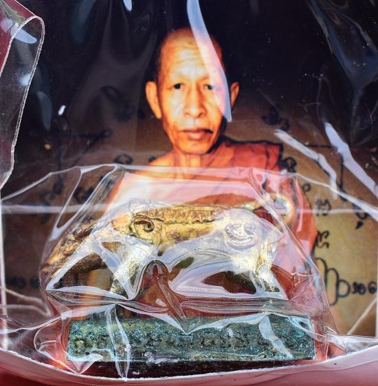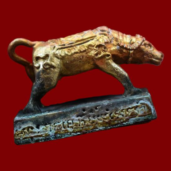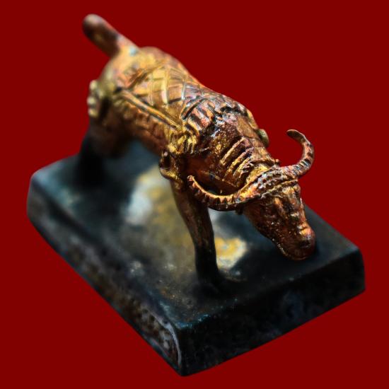 *** เคาะเดียวแดง ทุกรายการ *** ควายธนู เนื้อทองผสม ใต้ฐานอุดผง ฝังตะกรุด หลวงพ่อยุทธ วัดหนองนกเขียนสามัคคี นครราชสีมา ปี 2554 มีซองจากวัด สภาพตามรูป (No.1)