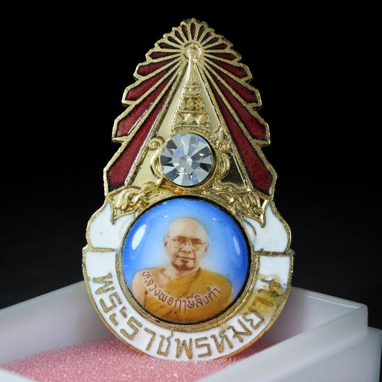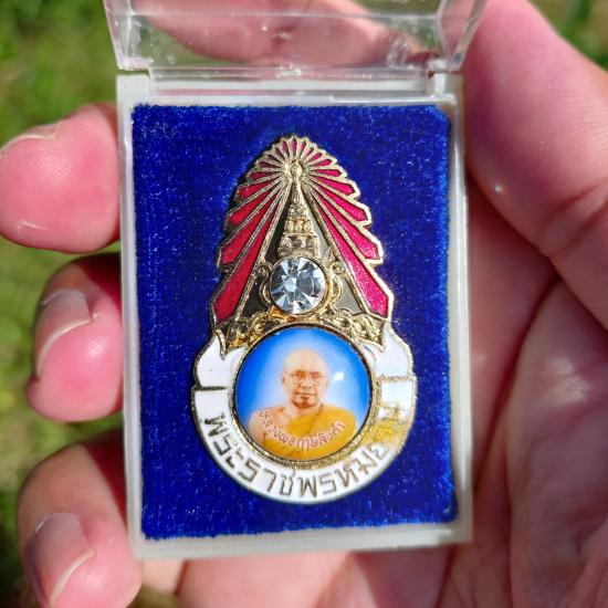 เข็มกลัดมงกุฏเพชร พระราชพรหมยาน ตัวหนังสือบาง หลวงพ่อฤาษีลิงดำ วัดท่าซุง สภาพใหม่มาก สวย เดิม พร้อมกล่อง